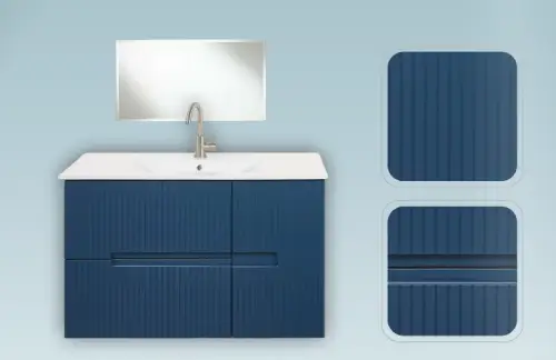 מגירות טריקה שקטה + משטח חרס אינטגרלי לבן + מראה קריסטל בלגי מרחפת מלבנית 120