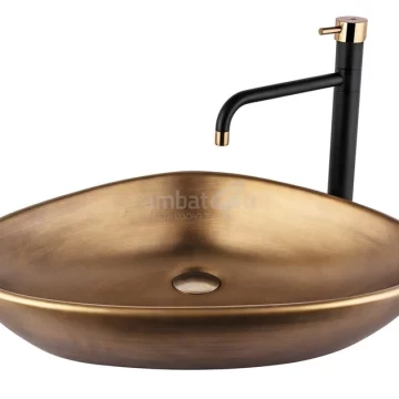 כיור חרס ברונזה צהובה/ זהב מט 59/39/13 ס"מ