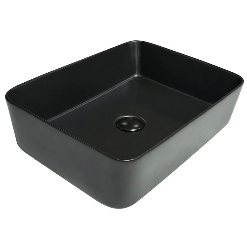 כיור מלבני מונח כולל ונטיל לחיצה / אביק חרס תואם.