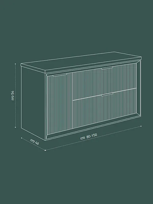 מידות רוחב: 80/90/100/110/120/130/150 ס"מ עומק: 46 ס"מ. גובה: 54 ס"מ.