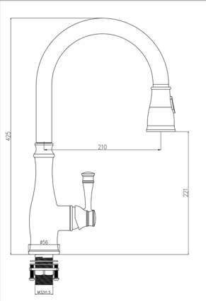 ברז מטבח נשלף זהב מט ידית שיבר 1064YB