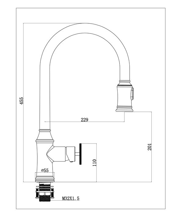 ברז מטבח נשלף שחור מט 1021B